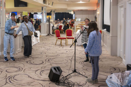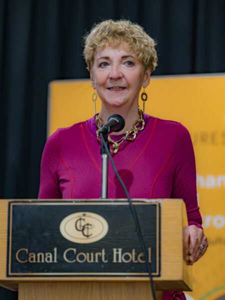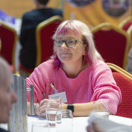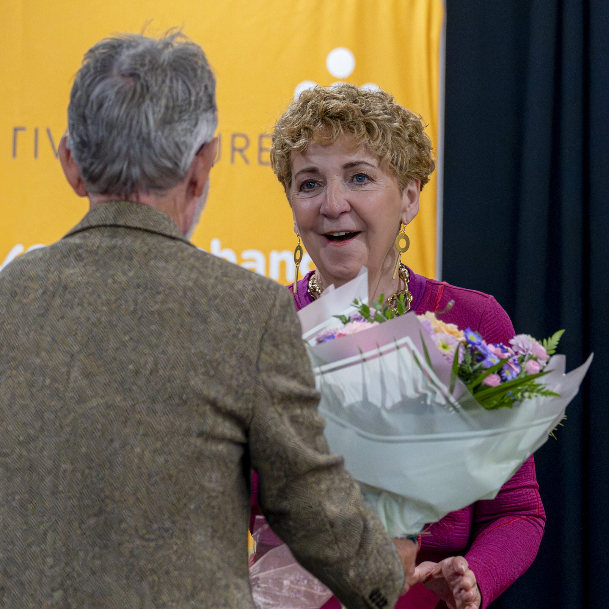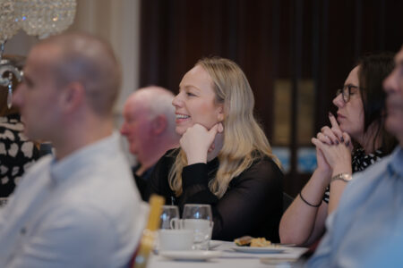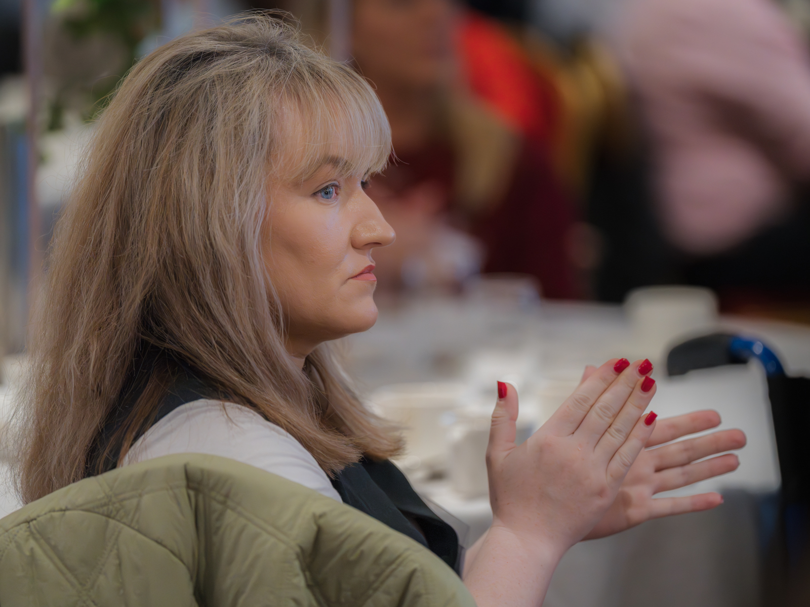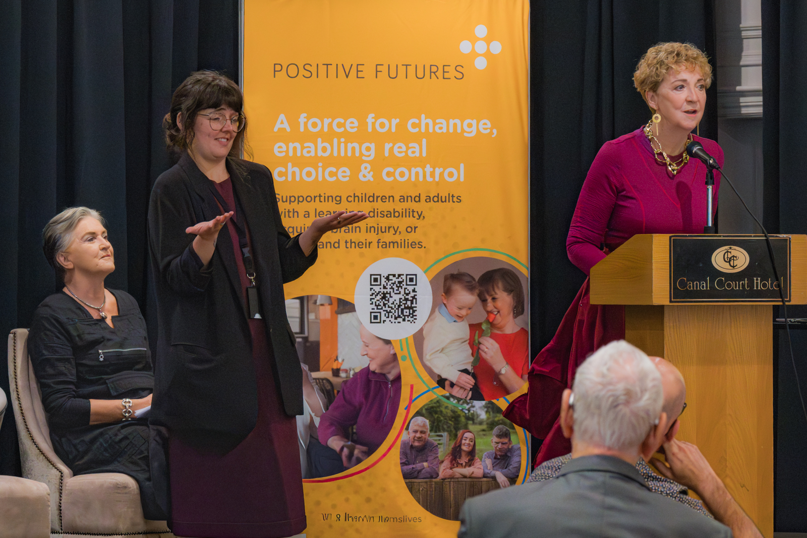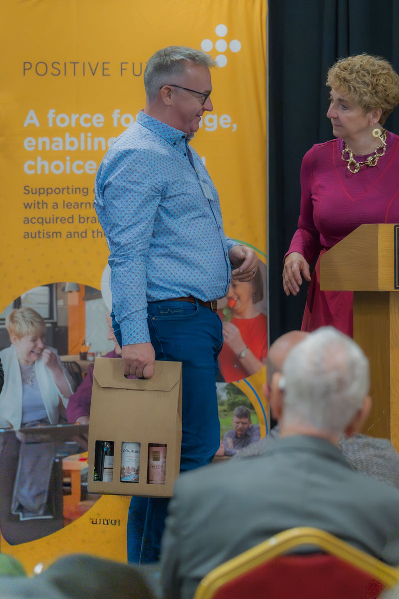 The event was co-hosted by Patrick McKinney, one of the people we support in our Sperrin Supported Living service, alongside Linda McCauley, renowned broadcaster. Guests were treated to a series of onstage interviews with people we support and their families by Helen Mark, MBE, our Honorary Vice-President. There was not a dry eye in the room as they shared powerful reflections on the positive impact Positive Futures has had on their lives.